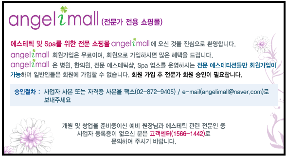 제1조 (목적) 이 약관은 (주)엔젤코리아에스떼(이하 “회사”라 함)과 엔젤아이몰에서 제공하는 전자상거래 관련 서비스(이하 “서비스”라 함)를 이용하여 상품 또는 용역을 거래하는 자 간의 권리, 의무 등 기타 필요사항을 규정하고, 회원과 회사간의 권리, 의무, 책임사항 및 회원의 서비스 이용절차 등에 관한 사항을 규정함을 목적으로 합니다. 제 2 조 (약관의 명시, 효력 및 변경) ① 회사는 정의된 약관을 회원(서비스를 이용하는 자)들이 알 수 있도록 회사의 서비스가 제공되는 인터넷 사이트 (http://www.angelimall.com)의 첫 화면에 게시합니다. ② 회사는 합리적인 사유 발생시 약관의 규제에 관한 법률, 전자거래기본법, 전자서명법, 정보통신망 이용촉진 및 정보보호 등에 관한 법률, 전자상거래 등에서의 소비자보호에 관한 법률 등 관련 법령에 위배되지 않는 범위 안에서 이 약관을 변경 할 수 있으며, 약관 변경의 경우 변경된 약관의 내용과 사유 및 적용 일자를 명시하여 효력 발생일 7일 전부터 1일 전 날까지 제1 항에 제시된 방법으로 공지합니다. ③ 이 약관에 동의하는 것은 정기적으로 회사가 운영하는 인터넷 사이트를 방문하여 약관의 변경사항을 확인하는 것에 동의함을 의미합니다. 변경된 약관에 대한 정보를 알지 못하여 발생하는 회원 또는 이용자의 피해에 대하여 회사는 책임을 부담하지 않습니다. ④ 회원은 변경된 약관에 동의하지 않을 경우 회원 탈퇴(이용계약의 해지)를 요청할 수 있으며, 변경된 약관의 효력 발생일까지 거부의사를 표시하지 아니하고 서비스를 계속 사용할 경우 약관의 변경 사항에 동의한 것으로 간주됩니다. 제3조 (용어의 정의) ① 이 약관에서 사용하는 용어의 정의는 다음과 같습니다. 1. 엔젤아이몰 : 자유로운 상품 또는 용역(이하 “상품”이라 함)의 거래를 위하여 회사가 제공하는 실시간 전자상거래 시스템 및 그 운영을 위한 웹사이트를 말합니다. 2. 회원: 회사에 개인정보를 제공하여 회원등록을 한 개인 또는 법인으로서, 회사의 정보를 지속적으로 제공받으며 회사가 제공한 서비스를 이용할 수 있는 자를 말합니다. 회원은 다음과 같습니다 - 전문회원: 전문 에스테틱 및 스파 관련업소에 종사한 사람으로 회원가입후 전문승인을 받은 자. 3.아이디(ID): 회원의 식별과 회원의 서비스 이용을 위하여 회원이 설정하고 회사가 승인하여 회사에 등록된 영문, 숫자 또는 영문과 숫자의 조합을 말합니다. 4. 비밀번호: 회원의 동일성 확인과 비밀보호를 위하여 회원 스스로가 설정하여 회사에 등록한 영문과 숫자의 조합을 말합니다. 5. 운영자: 회사에서 제공하는 서비스의 전반적인 관리와 원활한 운영을 위하여 회사에서 선정한 자를 말합니다. 6. 구매자: 회사에 등록된 판매자의 상품을 구매하는 회원을 말하며, 전문회원에게 구매자격이 부여 됩니다. 7. 신용등급: 회사가 제공하는 서비스를 이용한 결과에 따라 일정한 기준에 의하여 회사가 회원에게 부여하는 등급을 말합니다. 8. 상품평: 상품 구매 후 해당 상품에 대한 종합적인 평가를 기록한 글, 이미지, 영상물 등의 게재물을 말합니다. 9. 실명확인: 사업자회원은 상호명과 사업자등록번호의 일치 여부를 확인하는 것을 말합니다. 10. 영업일: 회사가 정상적으로 서비스를 제공한 날로서 토요일, 일요일 및 법정 공휴일을 제외한 날을 말합니다. 11. 결제대금 보호서비스: 회사가 구매자가 결제한 결제대금의 보호를 위하여 일정 기간 동안 결제대금을 예치하는 서비스를 말합니다. 12. 안전관리(TNS;Trust and Safety)센터: 서비스 이용 중 거래의 안전과 관련하여 발생할 수 있는 제 문제를 조정하기 위한 기구를 말합니다. 13. 분쟁조정센터: 원칙적으로 엔젤아이몰을 통한 거래에 따른 분쟁은 판매자와 구매자 간의 자율적인 해결이 원칙이지만, 예외적으로 분쟁의 합리적이고 원활한 조정을 위하여 회사가 설치 및 운영하는 분쟁조정기구를 말합니다. ② 제1항에서 정의되지 아니한 이 약관상의 용어의 의미는 일반적인 거래관행에 의합니다 제4조 (서비스의 종류) 회사에서 회원에게 제공하는 서비스의 종류는 다음과 같습니다. ① E-Commerce 서비스: 회사가 인터넷사이트(http://www.angelimall.com) 매매가 이루어질 수 있도록 온라인 거래장소를 제공하는 서비스 및 관련 부가서비스를 말합니다. 1. 판매관련 업무지원서비스 2. 구매관련 지원서비스 3. 계약체결, 결제 지원 및 결제대금 보호 서비스 4. 상품검색정보 서비스 5. 기타 전자상거래관련 서비스 6. 엔젤아이몰 광고 및 프로모션 서비스 ② 기타 서비스 : 상품문의게시판 서비스, 상품평, 전문가 리뷰 등 기타 정보제공 서비스, 회사가 직접 또는 제휴사와 공동으로 제공하는 텔레마케팅, 이벤트 서비스를 말합니다 제5조 (대리행위 및 보증인의 부인) ① 회사는 구매자와 판매자 간의 자유로운 상품의 거래를 위한 시스템을 운영 및 관리, 제공할 뿐이므로 구매자 또는 판매자를 대리하지 않으며, 회원 사이에 성립된 거래에 관련된 책임과 회원이 제공한 정보에 대한 책임은 해당 회원이 직접 부담하여야 합니다. ② 회사는엔젤아이몰통하여 이루어지는 구매자와 판매자 